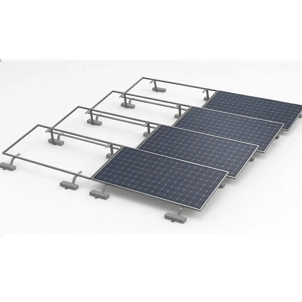 -DÜZ ÇATI, DAM ÇATI (DÖŞEME ÜSTÜ) YA DA 0 DERECE EĞİMLİ MEMBRAN ÇATILARDA 5 DERECE – 15 DERECE PANELLERE AÇI VERİLEREK GÜNEY YÖNDE UYGULANAN SİSTEMDİR.