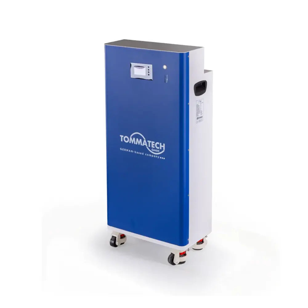 TommaTech Modüler V Serisi 14.33 kWh (51.2V 280Ah), yüksek kapasiteli enerji depolama ihtiyaçları için geliştirilmiş, dikey veya yatay olarak konumlandırılabilen, yeni nesil bir LiFePO4 (Lityum Demir Fosfat) batarya sistemidir.